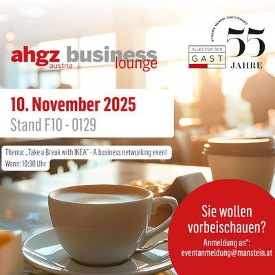 "Take a Break with IKEA" - A business networking event10.11.2025 , 10:30-11:00Business Lounge by ahgz austria, F10-0129Sandra Gerold